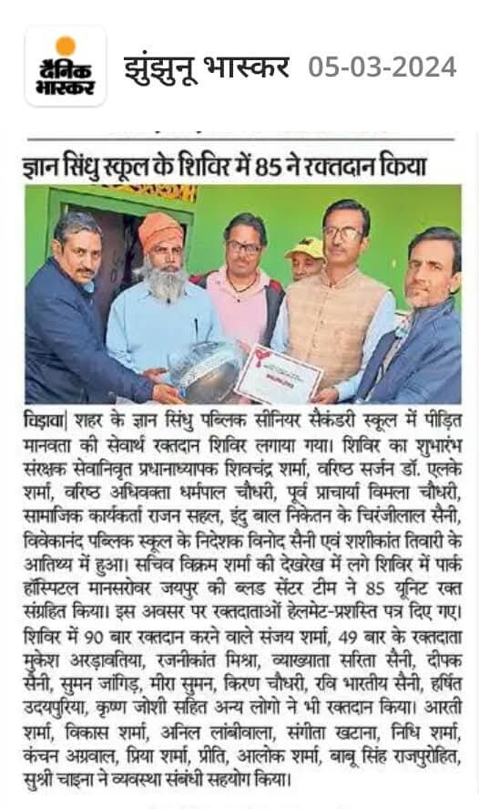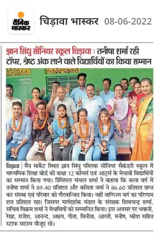 Gyan Sindhu Senior Secondary School is a government-recognized educational institution offering quality education from Nursery to Class 12. With over two decades of excellence, the school is committed to academic achievement, discipline, moral values, and overall personality development.