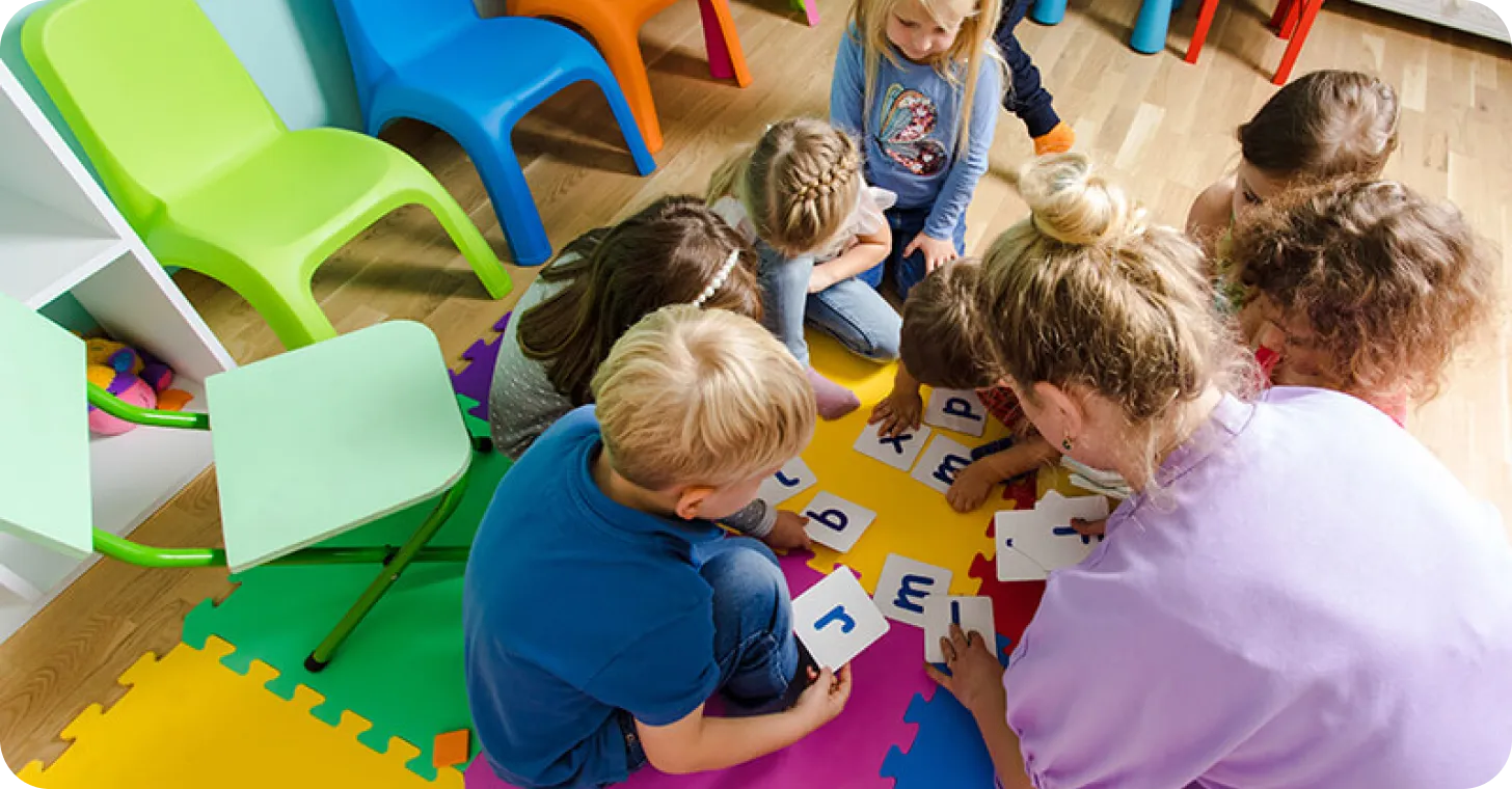 kindergarten is an educational environment designed for young children, typically aged 4 to 6 years, where they begin their formal education. The setting is often bright, colorful, and filled with engaging learning materials, such as books, toys, and art supplies.